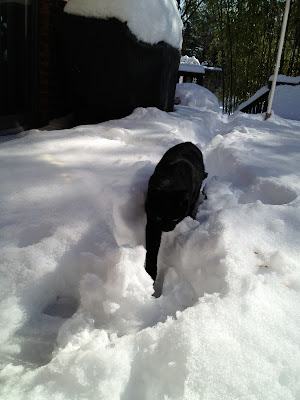 Jiji insisted on going out, but the snow was too deep for her! She had to practically burrow and hop her way through the snow on our deck. Not a happy camper.