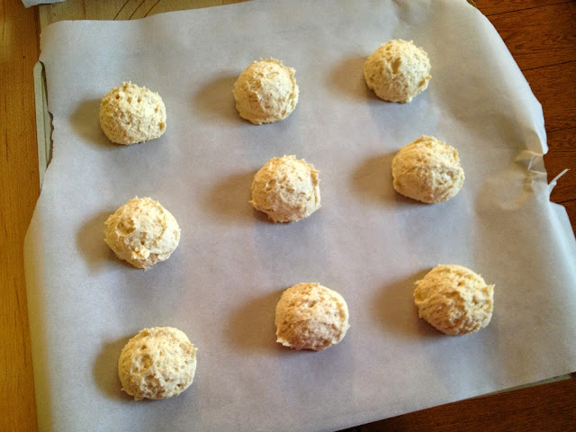 8. Drop rounded tablespoons of batter onto your baking sheet. If you have one, I found that an ice cream scoop worked beautifully.